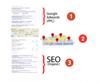 At the top of the page are the listings described as ‘Google Adwords PPC’. These ‘Pay Per Click’ advertisements are exactly that, paid advertisements. Business owners can advertise for certain keywords and when someone clicks on their advertisement, they pay a fee. If your ad appears in the search results but no one clicks on it, you don’t pay anything hence the expression, ‘pay per click’ advertising.