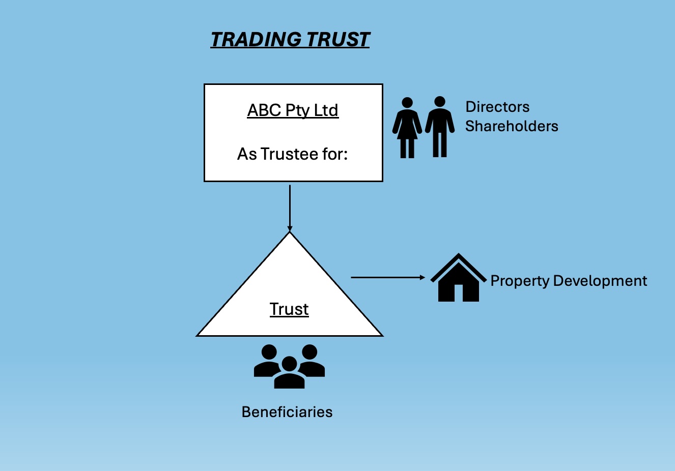 Note: For situations where you have multiple parties involved you would just have a Company as Trustee for a Unit Trust. Each party would then hold their share of Units in their own Trust.