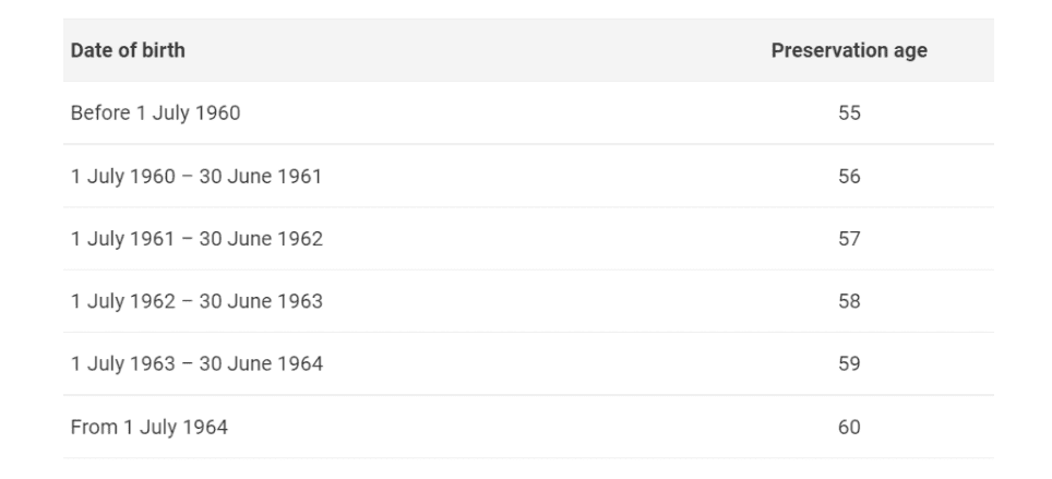 A transition to retirement (TTR) scheme means once you reach around 55 to 60 years and you’re still working, you can begin to access your super to supplement your income. When this happens will depend on your superannuation preservation age, the age when you can legally access your super. And your preservation age is determined by your date of birth.