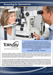 Just like your business, our business is all about vision and focus. Over the years the team at Tolevsky Partners have mentored a number of ophthalmic and dispensing opticians through the various stages of their business life cycle, from start up right through to sale of their business. In fact, optometrists have become a niche within our accounting firm.